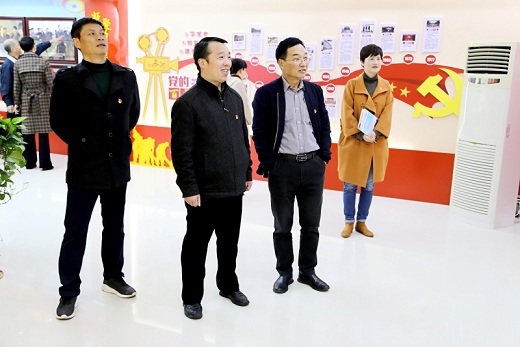 11月9日,銅官區(qū)委常委、組織部部長(zhǎng)谷豐和集團(tuán)公司黨委書(shū)記蔣升云共同為集團(tuán)公司在總部新建成的黨建展廳揭牌。